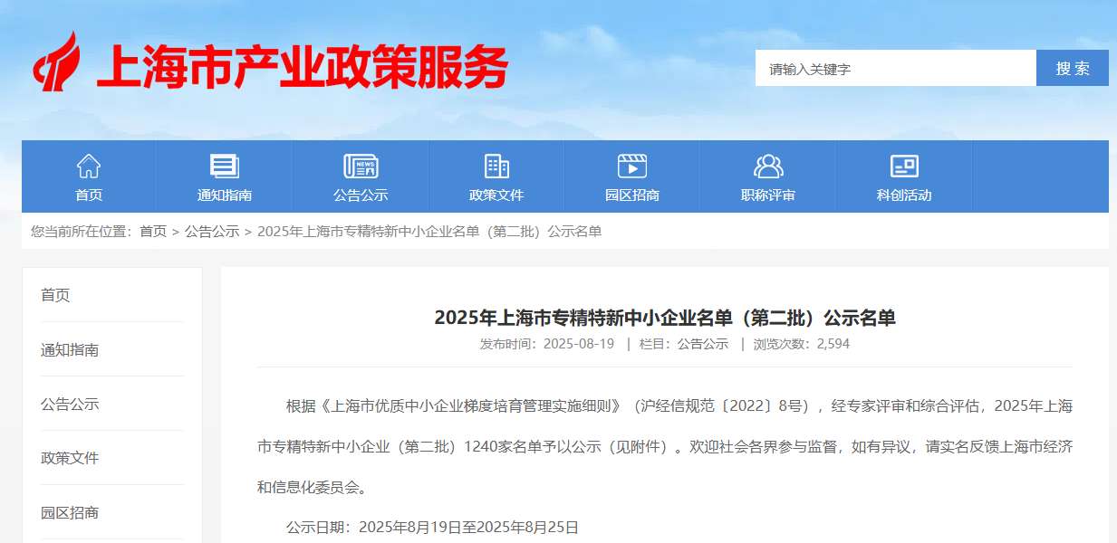 "Specialized, Refined, and Innovative" is an authoritative national designation designed to encourage SMEs to pursue specialized, refined, distinctive, and innovative development. It aims to cultivate a group of benchmark companies with core technologies and leading market share in their niches. Awarded companies must pass a multi-dimensional assessment encompassing innovation capabilities, economic benefits, and professionalism, earning them the title of "vanguard" among SMEs.Receiving the title of "Shanghai Specialized, Advanced, and Innovative SMEs" is both an honor and a responsibility for Chuangdao. Going forward, Chuangdao will further integrate the core spirit of "Specialized, Advanced, and Innovative" into every step of its development and remain steadfast in its pursuit of independent innovation.Attachment: 2025 Public List of Shanghai Specialized, Advanced, and Innovative SMEs (Second Batch)https://www.sheitc.sh.gov.cn/gg/20250819/e01df4f6854b4cffbad632b9c29cc1c7.html